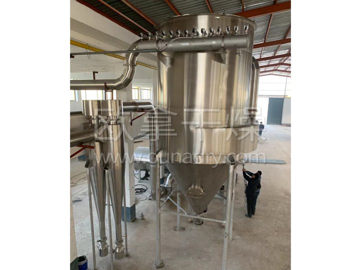 我廠根據(jù)中藥浸膏的物料性質(zhì)與工藝要求設(shè)計了新型中藥浸膏噴霧干燥機,干燥后的物料顏色好、不變質(zhì),大大地提高了干燥設(shè)備廠家的經(jīng)濟效益。